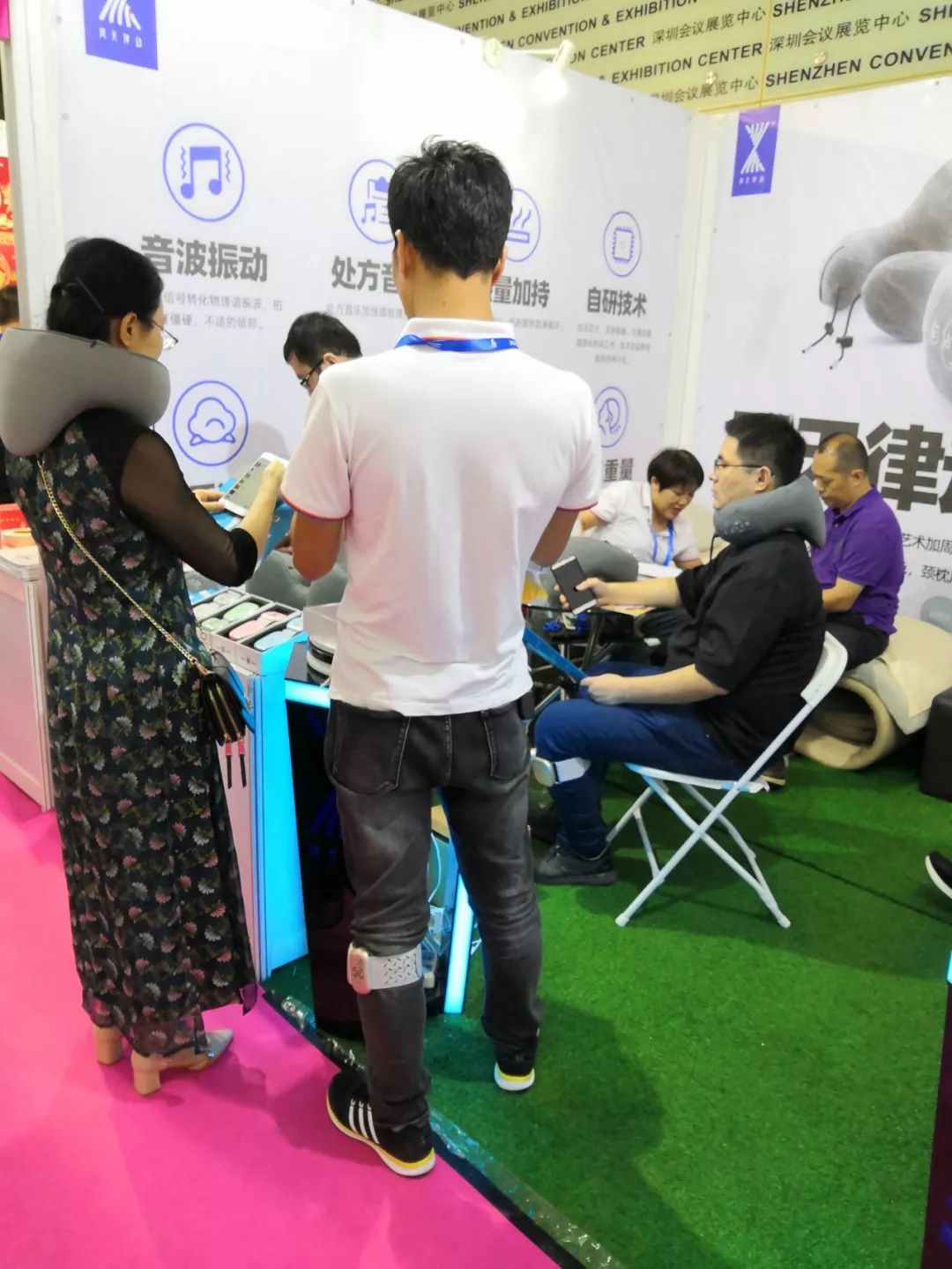 展會(huì)現(xiàn)場(chǎng)眾多買家前來(lái)周天律動(dòng)展位體驗(yàn)音樂(lè)律動(dòng)按摩產(chǎn)品,咨詢相關(guān)產(chǎn)品及購(gòu)買信息,周天律動(dòng)工作人員耐心的講解,很多買家紛紛表示對(duì)周天律動(dòng)的音樂(lè)按摩產(chǎn)品非常感興趣,對(duì)周天律動(dòng)專業(yè)的服務(wù)給予了高度評(píng)價(jià)和稱贊。