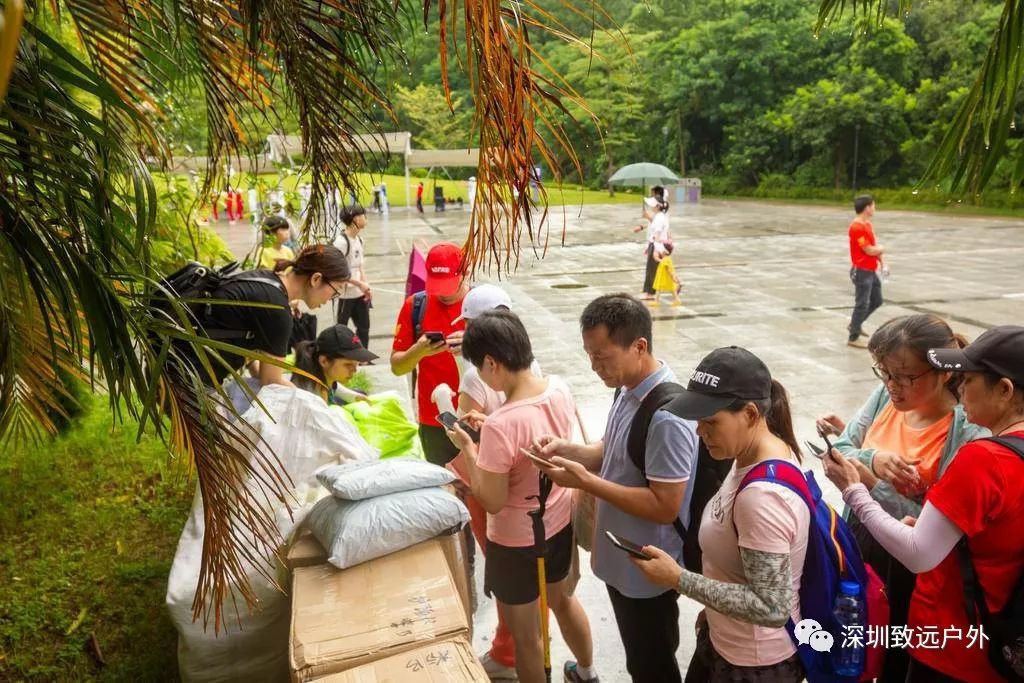 深圳市梧桐山仙桐體育公園簽到處開始有序的排隊(duì)進(jìn)行簽到領(lǐng)取物資